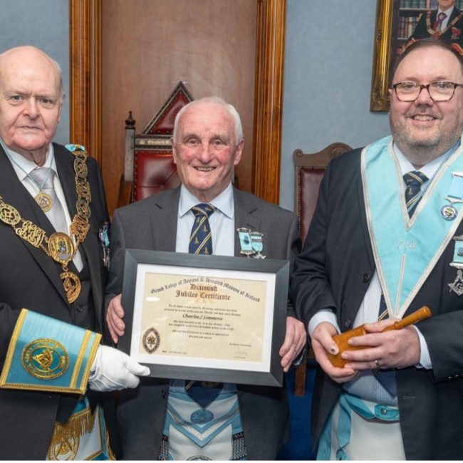 The Lodge installed WBro. Wesley Francis as its new Master in January 2020. In March 2020, the Covid-19 pandemic halted all masonic activities, leading to virtual meetings via Skype and later Zoom until September 2021. Despite challenges, the Lodge has grown post-pandemic. It celebrated 75 years in 2022, welcoming new members, including Bro. Andrew McKeag, a fourth-generation member. On November 5, 2022, the Lodge held an Extraordinary Meeting in Grand Lodge, Dublin.